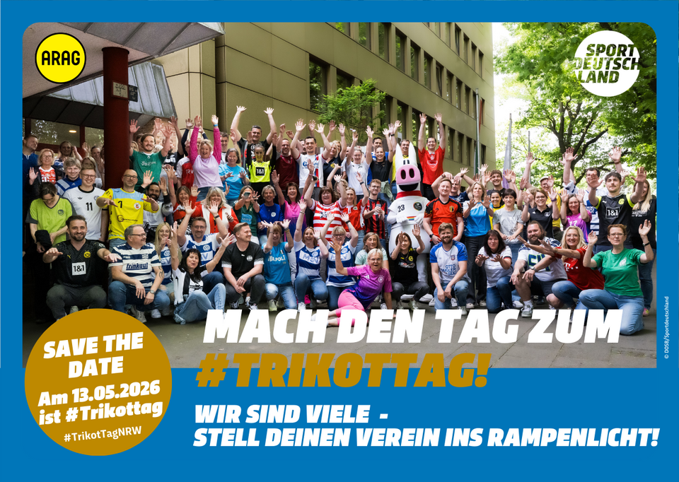 Am 13. Mai 2026 rufen der Landessportbund Nordrhein-Westfalen e.V. und seine Sportjugend zusammen mit anderen Landessportbünden bundesweit alle Sportvereinsmitglieder dazu auf, Werbung für ihren Verein zu machen. Tragt an diesem Tag das Trikot, das Polo-Shirt oder den Trainingsanzug Eures Vereins nicht nur während des Trainings sondern auch bei der Arbeit, in der Schule, beim Einkaufen und überall in der Öffentlichkeit, um somit ein Zeichen für den Vereinssport zu setzen.