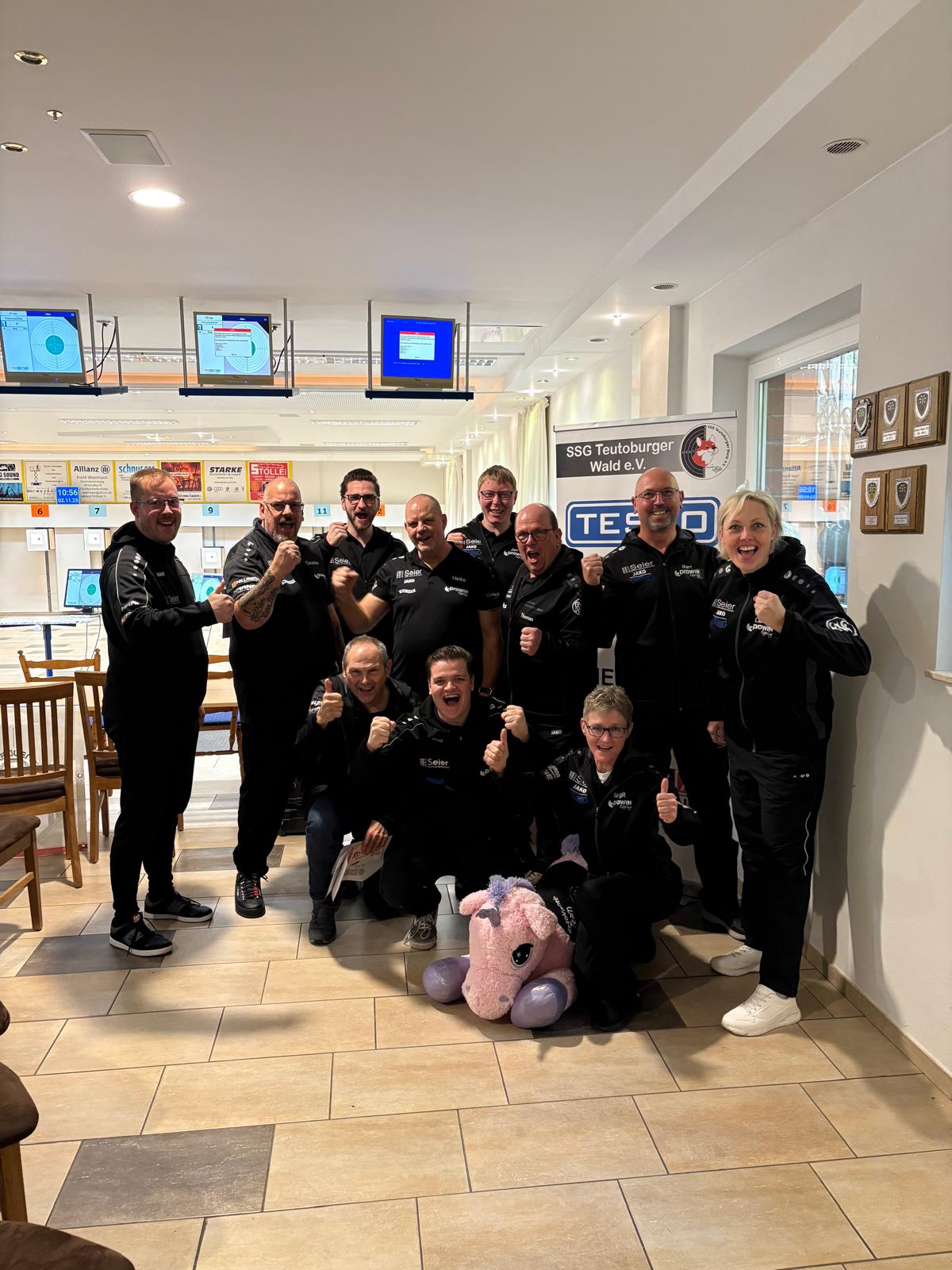 Bei ihren Heimkampf in der Fuchskuhle ging es für die SSG Teutoburger Wald im ersten Wettkampg gegen den SSV Fahrdorf. Top-Schütze Jan-Hendrik Waldvogt lieferte gegen Michelle Leth Wehage mit 384:372 Ringen wieder einmal Bestleistung ab und sicherte den ersten Punkt. Während Stefan Krause und Frederik Münster an den Positionen zwei und drei ihren Gegner unterlagen konnten Maximilian Eichhorn und Aleksey Tsaturyan an den Positionen vier und fünf für die entscheidenden Punkte sorgen. Es wanderten damit die ersten zwei Mannschaftspunkte auf das Konto der Westfalen. Trotz erneut guter Leistung reichte es im zweiten Wettkampf gegen den SV Falke Dasbach nur zu einem 1:4.