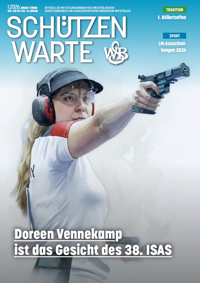 Mit der SCHÜTZENWARTE werden alle wichtigen Informationen rund um den Westfälischen Schützenbund veröffentlicht. Top-Themen dieser Ausgabe sind die Landesmeisterschaften, der 38. ISAS 2026 in Dortmund und jede Menge Berichte aus dem Ligabereich.