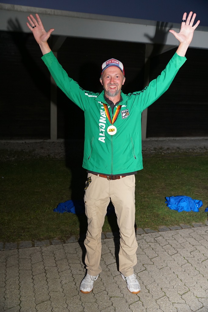 Für Uwe Funke (WTC Team Altona) gab es in dieser Woche die Medaillen drei und vier. Nachdem er bereits mit der Mannschaft gemeinsam mit Hermann Revermann und Hans-Ludwig Hapke die Silbermedaille sicher hatte, musste er im Einzel noch ins Stechen um Gold. Dort unterlag er zwar seinem Jagdfreund Arno Betke (ND) freute sich aber dennoch über die diesjährige DM: „Es ist einfach schön, nach einem Jahr Zwangspause von der DM wieder mit allen Freunden und Bekannten aus ganz Deutschland am Schießstand zu stehen. Klar hätte ich gerne Gold geholt, freue mich aber auch für meinen Kumpel Arno!“. Die Mannschaft der Herren III des SSC Schale holte hier die Bronzemedaille.