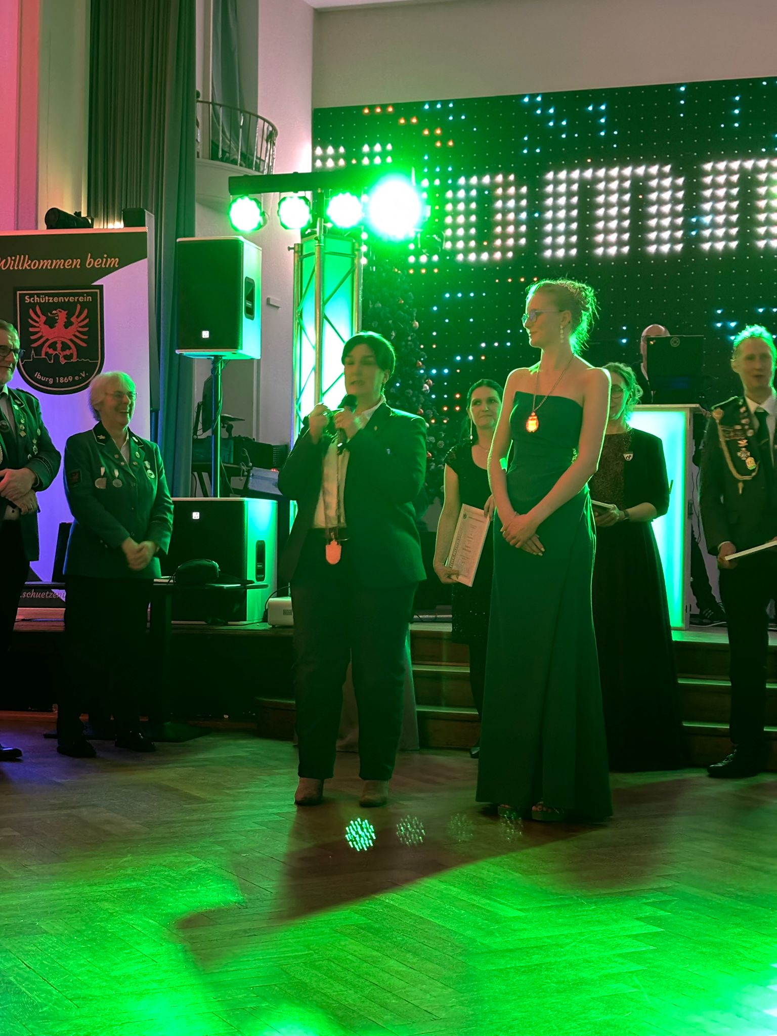 Im Anschluss wurde ich nach vorne gebeten, um die Krönung der Jugendkönigin Fabienne Metker offiziell nachzuholen. Diese hatte beim Westfälischen Schützentag nicht in angemessenem Rahmen stattfinden können und wurde daher im würdigen Rahmen dieses Winterballs vollzogen. Fabienne Metker wird den Westfälischen Schützenbund beim Bundeskönigsschießen im Mai in Frankfurt vertreten. Wir freuen uns sehr darüber und werden sie dort tatkräftig unterstützen. Alle Schützinnen und Schützen drücken ihr die Daumen – vielleicht gelingt ihr sogar der Titel der Bundesjugendkönigin 2026 des Deutschen Schützenbundes.