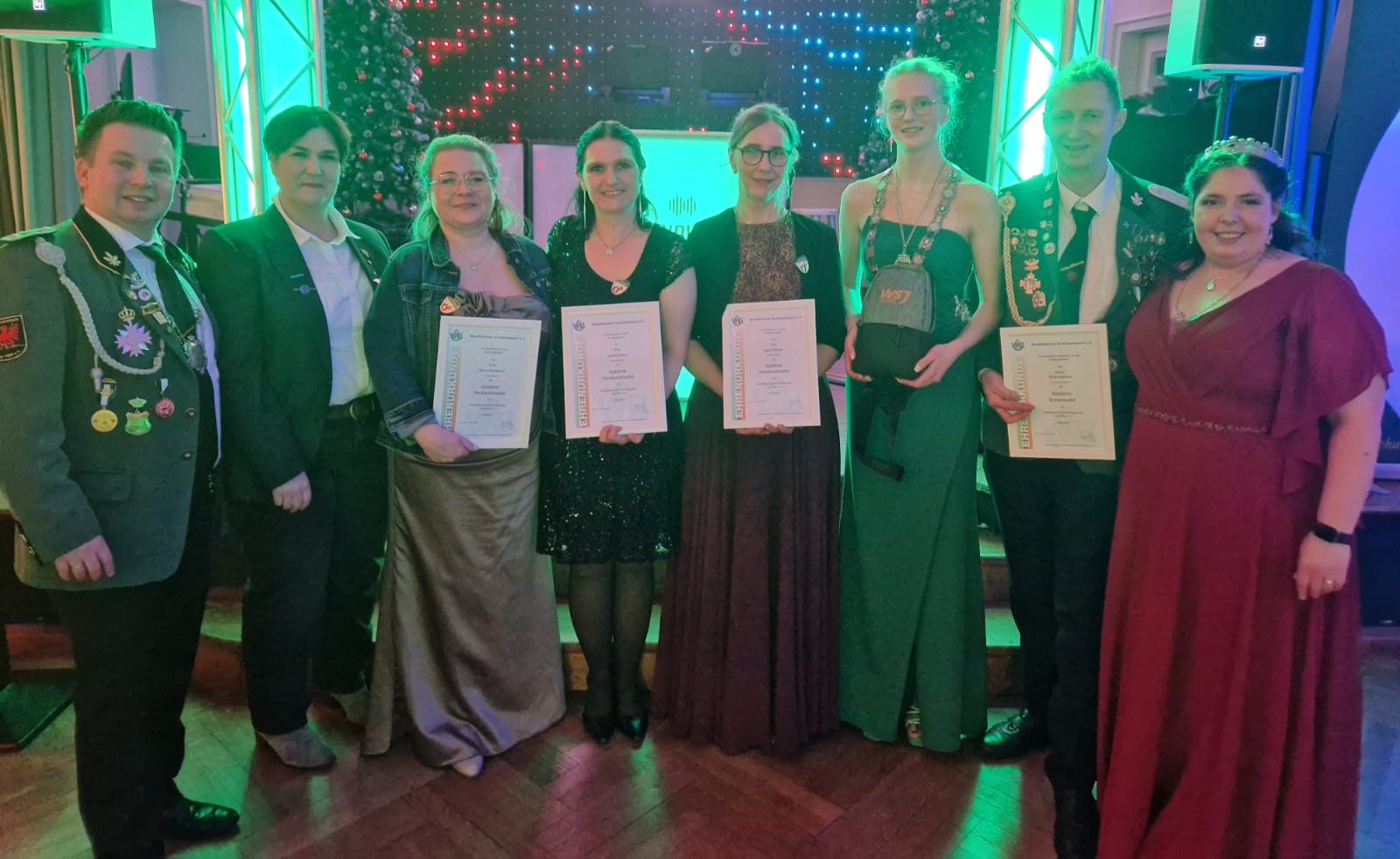 Nach dem Ehrentanz und einer gemeinsamen Tanzrunde schloss sich der Programmpunkt Ehrungen an. Diese wurden vom Vizepräsidenten vorgenommen, da der erste Präsident André Wichmann als amtierender König an diesem Abend eine andere Funktion innehatte. Geehrt wurden verdiente Schützenbrüder und Schützenschwestern.